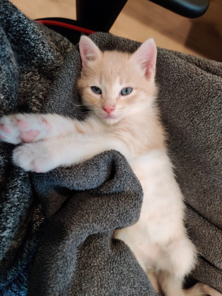 We adopted him in April when he was 6 weeks old. He was my secret personal OKR (Objective & Key Result) for 2021 that I dared not write about until my wife gave her blessing to adopt. For those who didn’t know, my wife despised cats based on previous unfortunate experiences. For the past several years, she explicitly said multiple times that we will NEVER get a family cat. Thankfully, prayers were answered and Momo has melted her icy heart towards felines. ๐ฅ Today, I saw her playing with the little fur ball, talking to him as if heโs an adorable baby (he really is!), and laughing with him. The twins, who have been super responsible in feeding him and cleaning his kitty litter box twice a day, are overjoyed too. The family feels completeโฆ but now I keep telling my wife that Momoโs life would be richer with a sibling. ๐